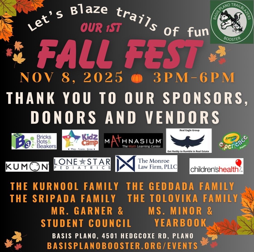 We are excited to announce that this event will be at BASIS Plano. It is an outdoor event. Dress comfortably. We encourage all students, faculty, and families to participate and show their support.